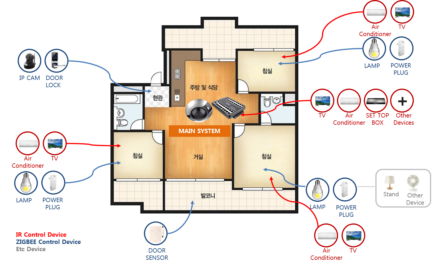 -Open type Android Set-Top-Box of OMNIVISTA has HUB to control Smart Home IoT(Internet of Things) device that have Lighting Switch, Home Security Device (Door Sensor, PIR Sensor, Fire & GAS Sensor, Smart Door Lock etc.)Thermostats and Smart Appliance(Smart plug, HUB, Control IR Devices), and can provide IoT optional services